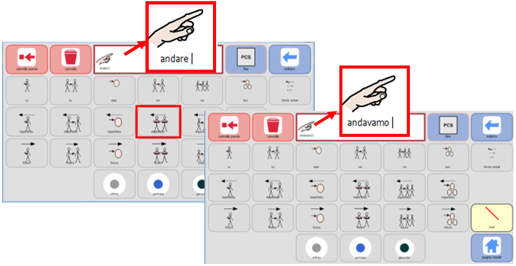 Coniugazione del verbo tramite lettura delle caselle di predizione di parola
